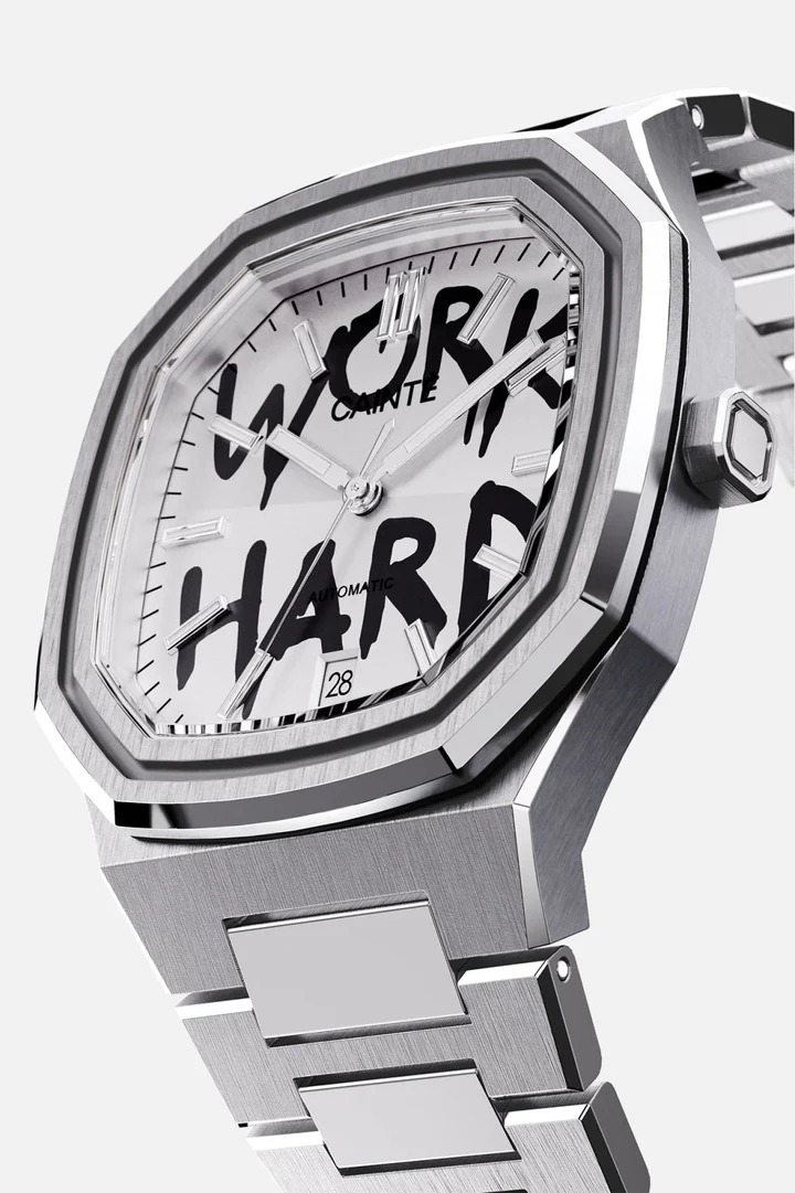 It is a luxury limited-edition automatic watch with a bold “Work Hard” design, created for individuals who value ambition and determination.